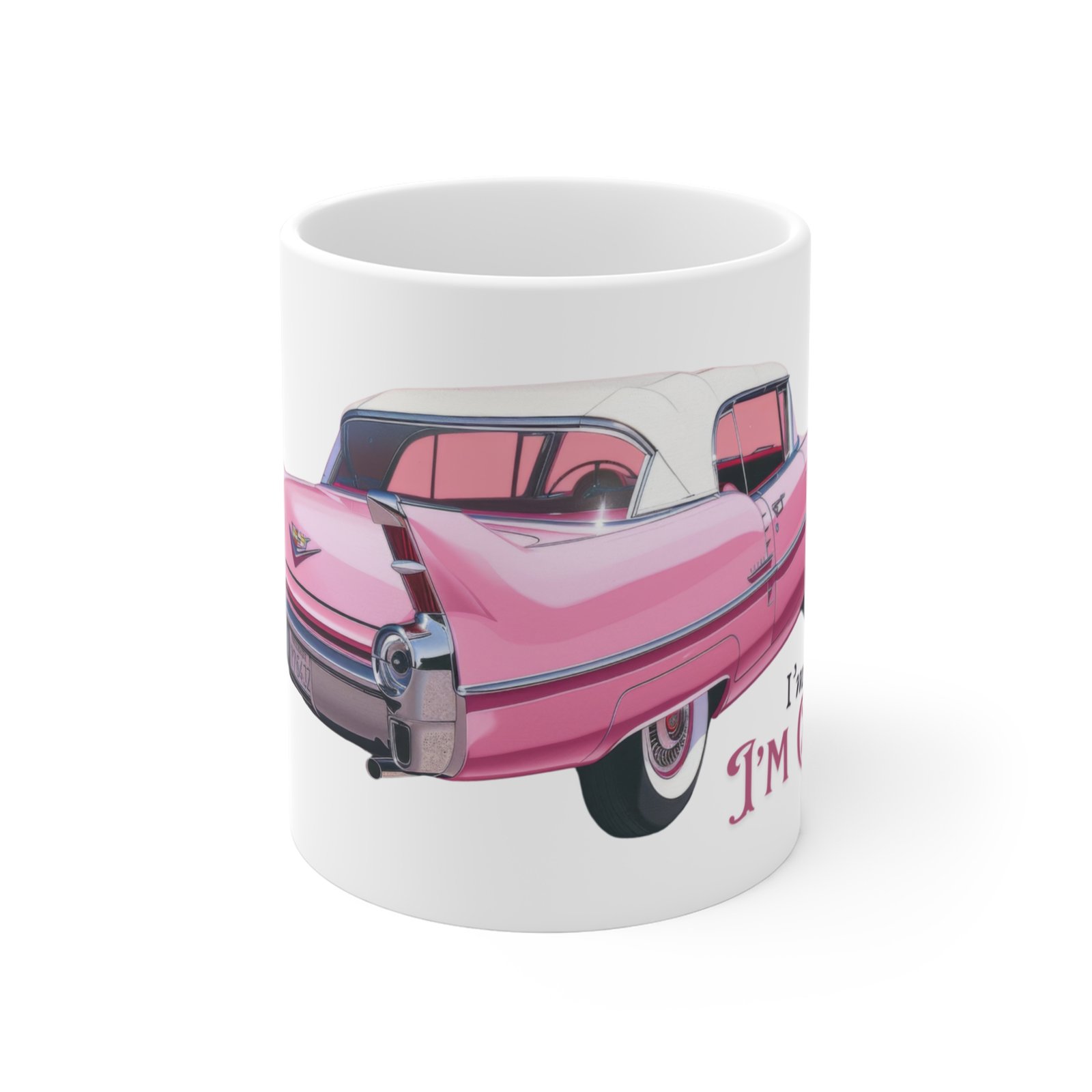 WickerStudio Pink Cadillac Iconic Classic Car, Vintage Car Lover Gift, Father’s Day Mug, Retro Car Mug