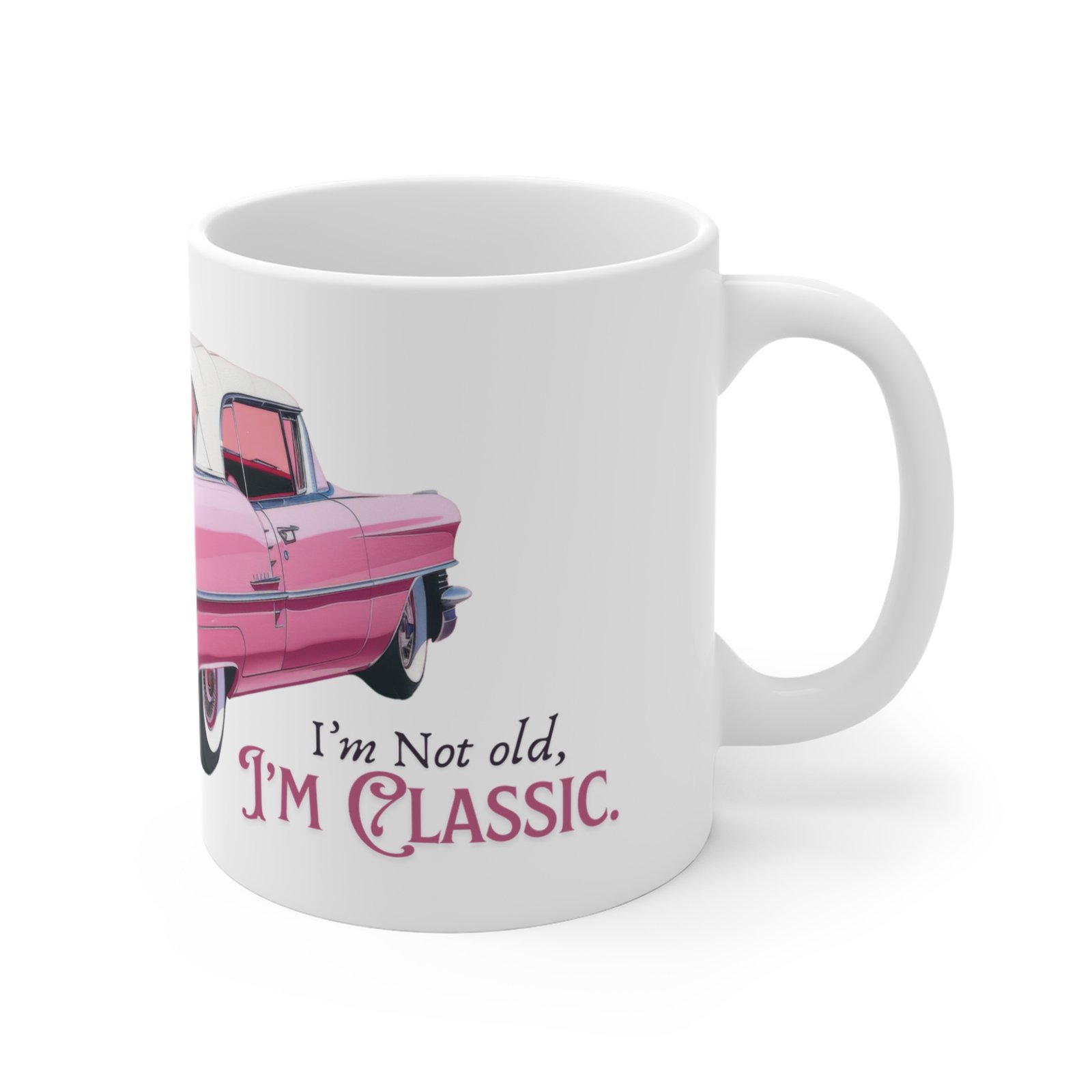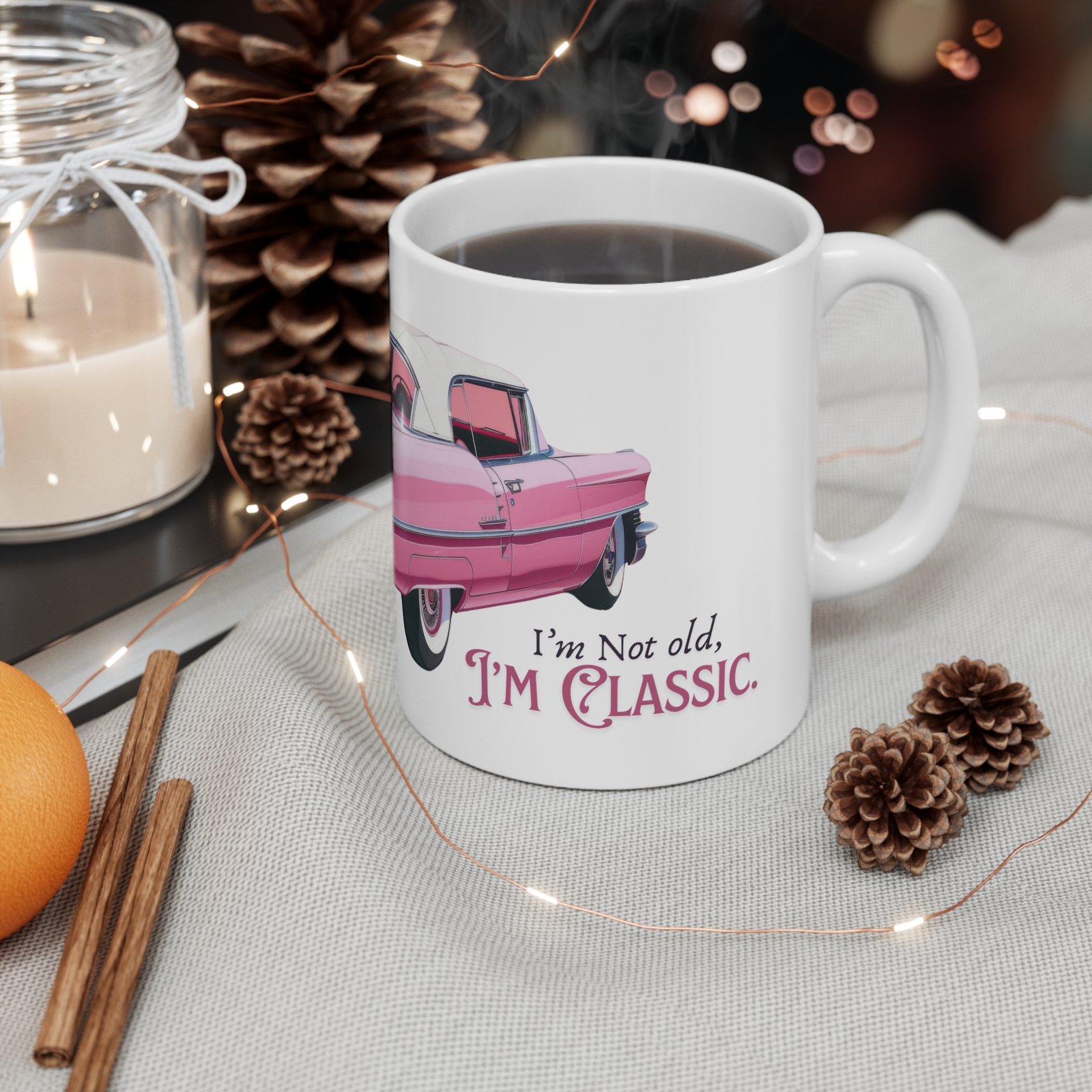 Experience the nostalgic vibe of the Cadillac iconic classic car with this vibrant and eye-catching mug. Perfect for vintage car enthusiasts and automotive lovers. Ideal for enjoying your morning coffee or tea. Relevant for Father’s Day, birthdays, and car aficionado celebrations.